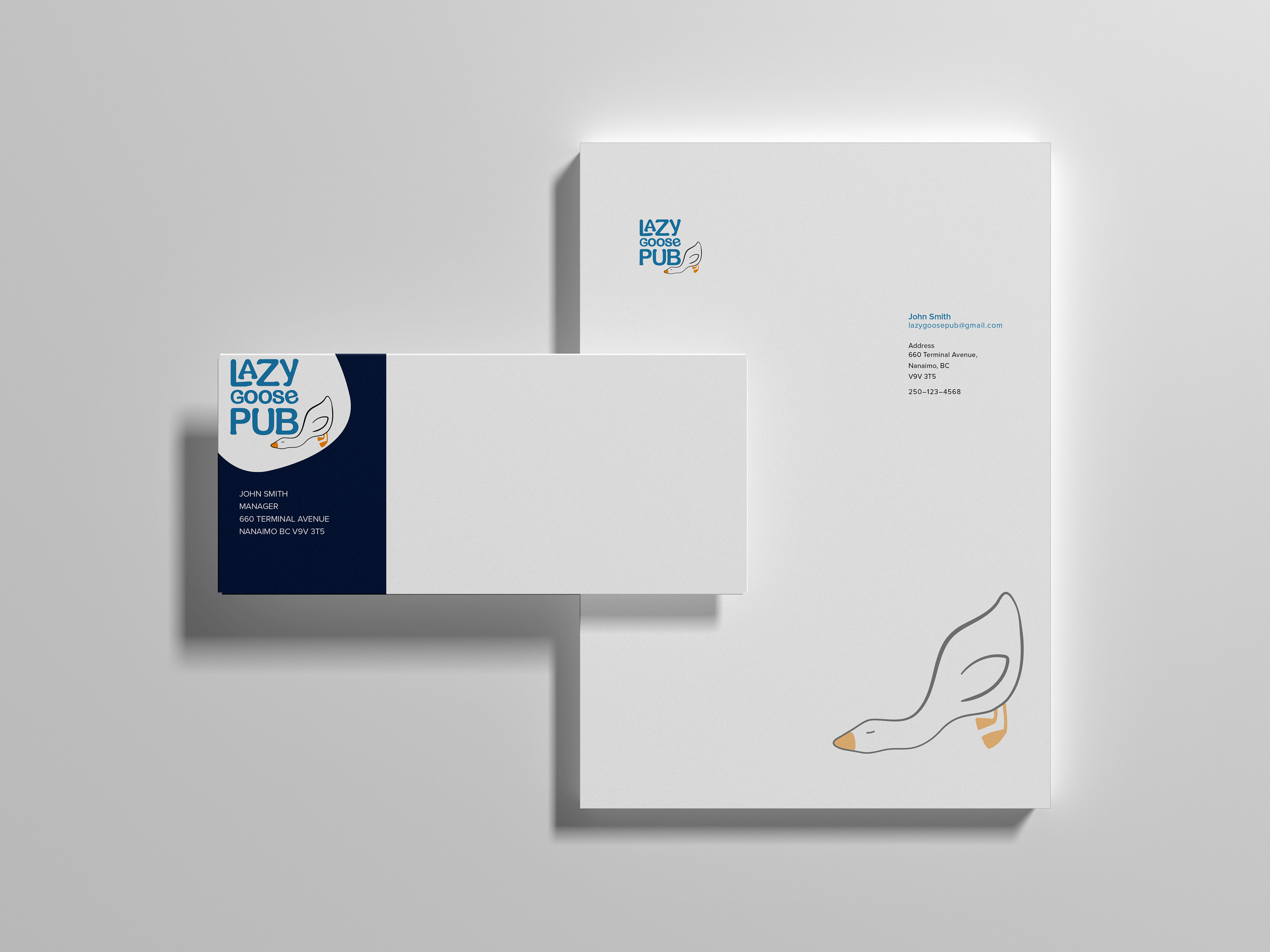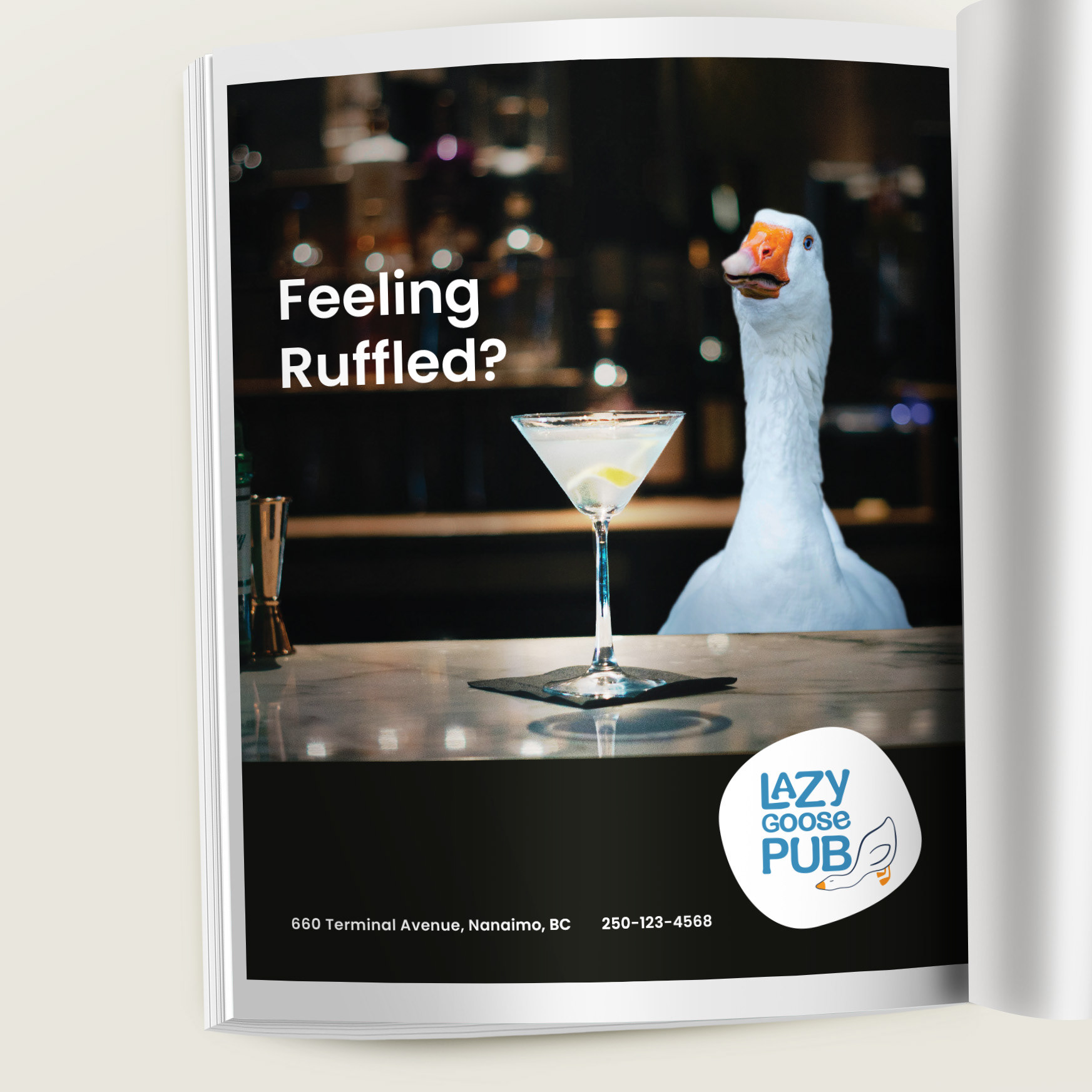 For this project, I was tasked to create a brand for a local business. In this case, the Lazy Goose Pub. Along with the logo, I designed business cards, stationery, a rack card, and a magazine ad.